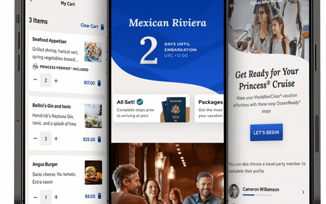 3 teléfonos celulares indicando como hacer el oceanready de Princess
